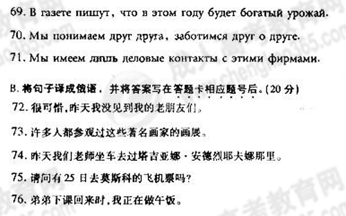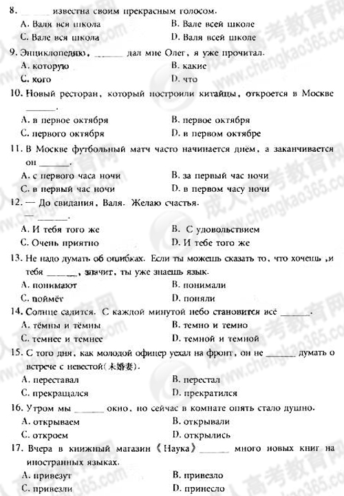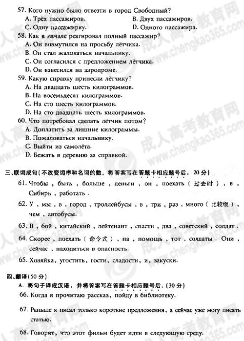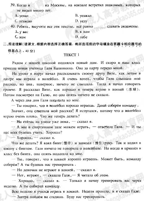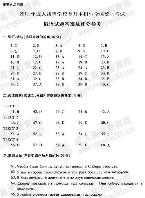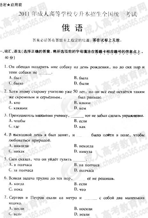 2011年成考专升本俄语真题及答案